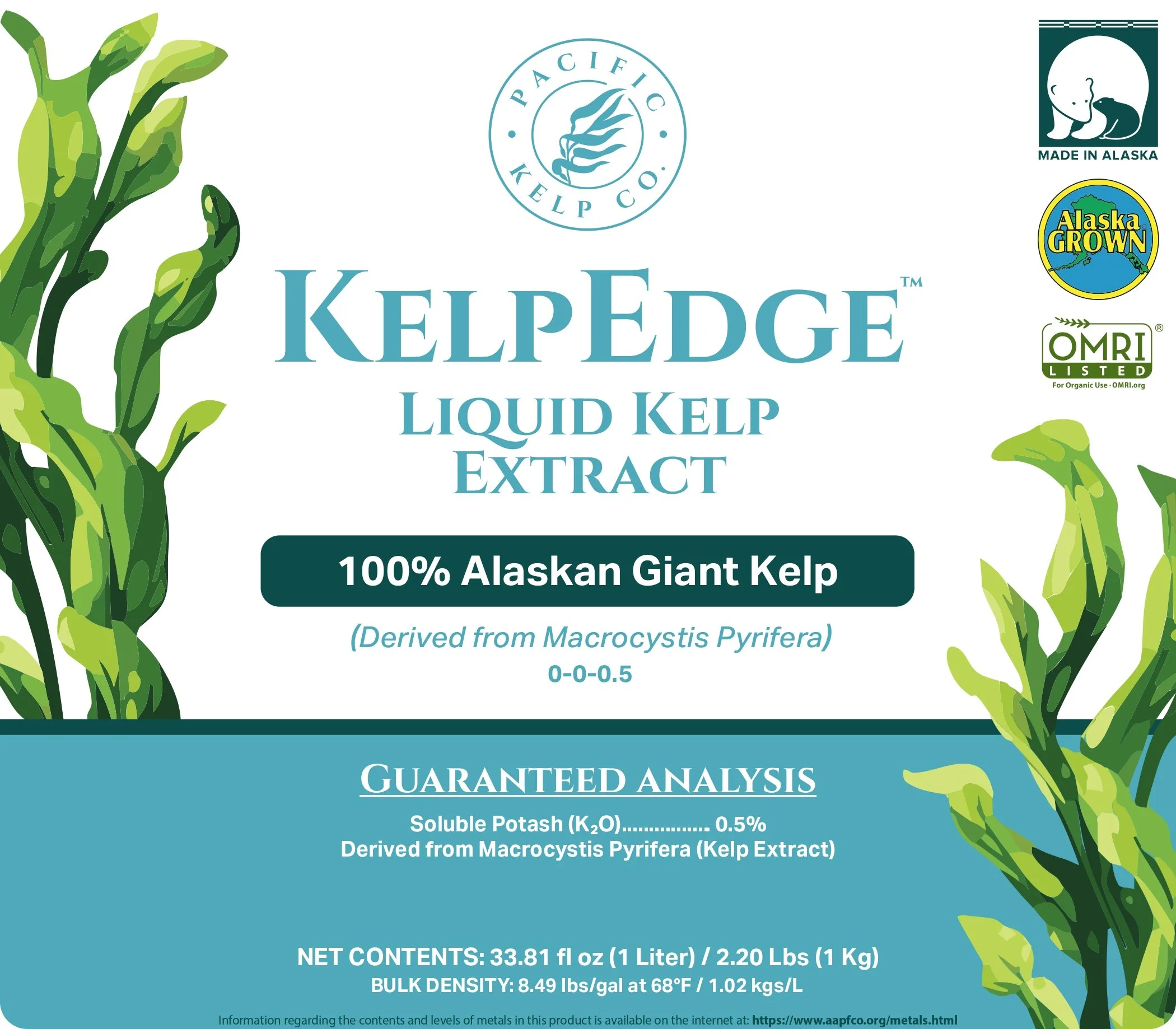 Our high-quality and sustainable Alaskan Giant Kelp is transformed into liquid kelp extracts that improve crop and plant health, promote plant stress tolerance, and increase nutrient uptake